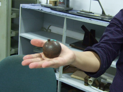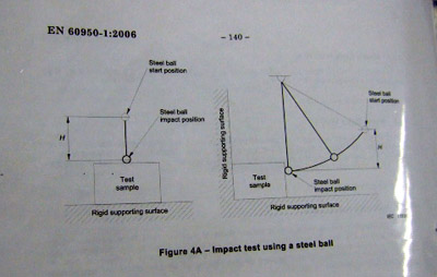There are some odd testing methods too... like this steel ball impact test. You guys don't really have steel balls here do you?