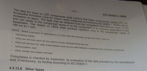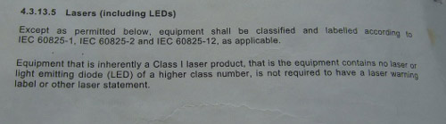 Now remember how the other lab was trying to cheat us saying we needed to do laser testing on the LEDs??? Here's what the Law says!