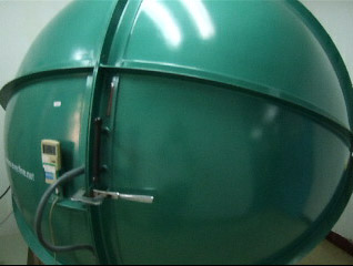 A strange spherical container used for light bulb testing.