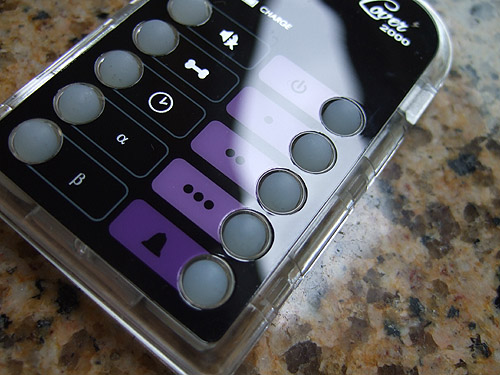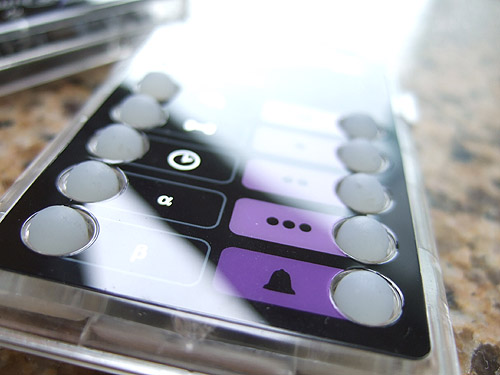 This time the overlay is thicker, the holes are cut properly, no glue is coming out, the surface is flat and the colors are correct. The keypad will be black in the final product.