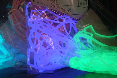 2010-08-22 23:43:03 (5482 views) Tried the glow in the dark parts under a real fluorescent UV light (not an LED source, which has a lot more emissions in the visible spectrum).