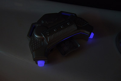 Finally got a real UV LED (not purple). UV light charges the rubber optimally; strength is hard to define because who knows how strong those fluorescent club UV lights really are, and how strong an LED is in proportion. Expect very nice results when UV lights are present. And for events with no UV lights, you can just bring a UV LED and two CR2032 batteries (round type) giving 6V, and charge up your device's glow whenever needed.