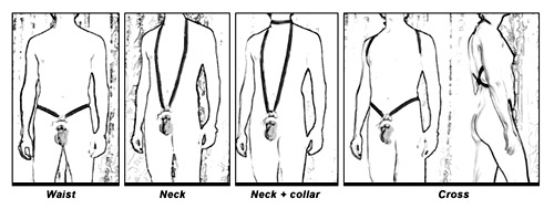 Worn under clothes, the waist style is the simplest and most comfortable. Other styles are a lot more attractive when clothes are not worn.