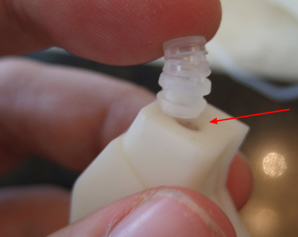 Regarding the rubber parts, here's the deal. First of all when you make grommets you have to make sure the tip can fit in the hole. Otherwise it's just very very hard to put the grommet in. We've got a 5.3mm radius on the grommet's edge and a 4.75mm hole, this won't work, it took half an hour to get this thing through the hole!