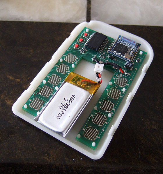 As you can see the battery connector is problematic at this point. We need to get the battery manufacturer to create these packs with very short wires and the usual molex connector. The board side molex connector is problematic because the metal contacts come out when you pull the battery! We'll switch to the horizontal version of this connector though the assembly people will have to be careful to cut the leads which will protrude from under the board (same as the LEDs used to do, another reason to get rid of them).